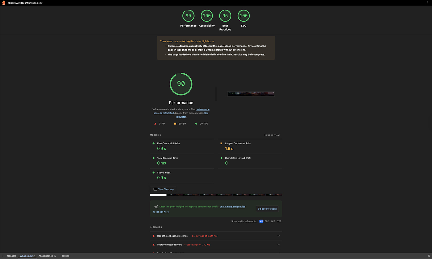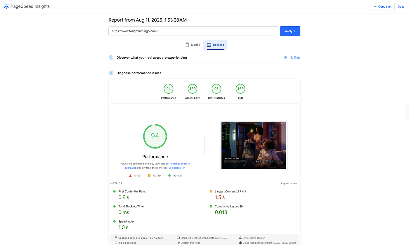 From the data that I received, I was able to achieve a score of 100 on both Lighthouse and PageSpeed. This is great news to see. Everything is consistent, and the flow is nice. This was a key milestone to receive the score using two resources with the same outcome. That was only the first half of it. There were challenges that I came across that the tools would never have been able to recognize, specifically functionalities where you have to click on a button for more information to be revealed.