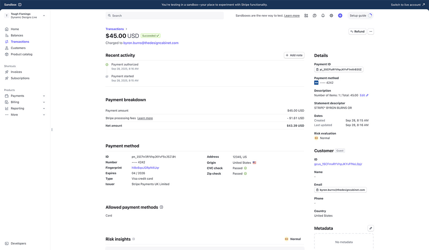 Utilizing Stripe as the central payment processor has the most significant impact on the store's operations. Stripe is PCI-compliant to help ensure that sensitive information, such as credit card numbers, is securely processed. Stripe has a pre-built form to place within the site. That added more security because that means I don't have to create a form myself. I am not a big fan of using JavaScript to send and receive sensitive information. I had to make sure that I did my part on the front-end to make sure that the data is challenging to track.